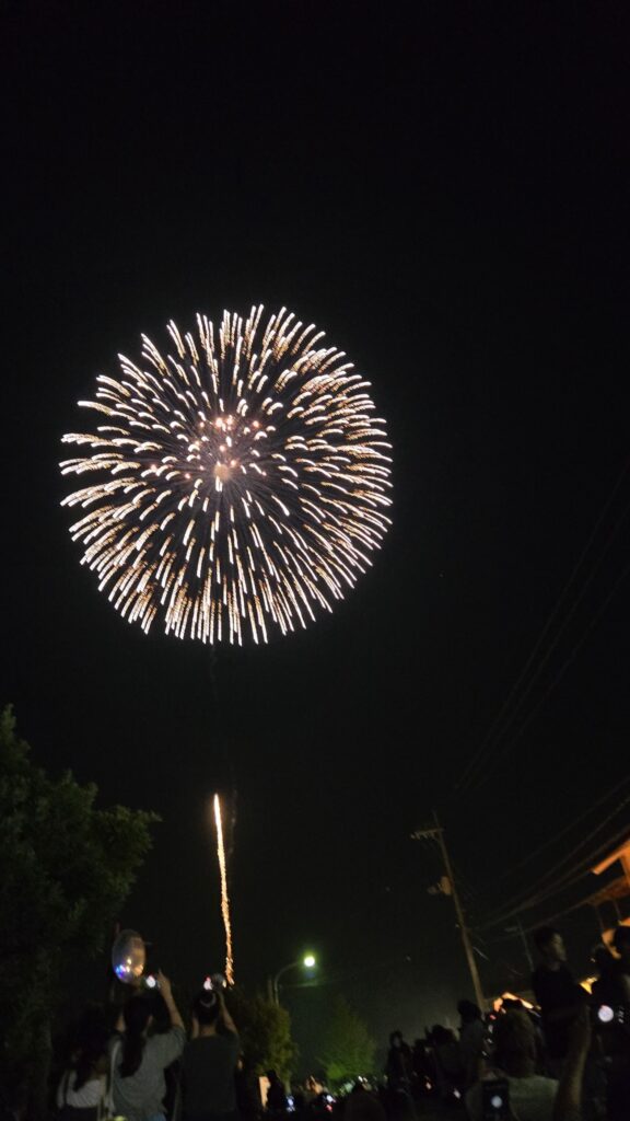 そして最後の花火が散っていくと「キレーだった」「すごかった」「たのしかった」とそれぞれの感想を言ってくれました。そして余韻に浸りながら帰路についたのですが、一斉に撤収モードになり、人の流れに乗って歩いていると前方から緊急車両が入ってくるではありませんか。この熱気にやられ熱中症になったのか、ストロング缶片手に羽目を外してしまったのか。分からないけれども救急車がサイレンをならしながら会場中央に向かっていきます。救急車を横目に子供たちを見るとはぐれないよに一生懸命についてきています。もちろん手はつないでいるけれども、この人込みの熱気のなか歩かせるのは危険だったな。と反省し、道の端に寄ろうとしたら汲み取ってくれたのか「大丈夫だよ」と言ってくれ、疲れた様子も見せずに頑張って歩いてくれました。たくましい子たちや。と思いながら来年は時間をずらして帰るとかも考えないとな。と反省しながら帰路につきました。