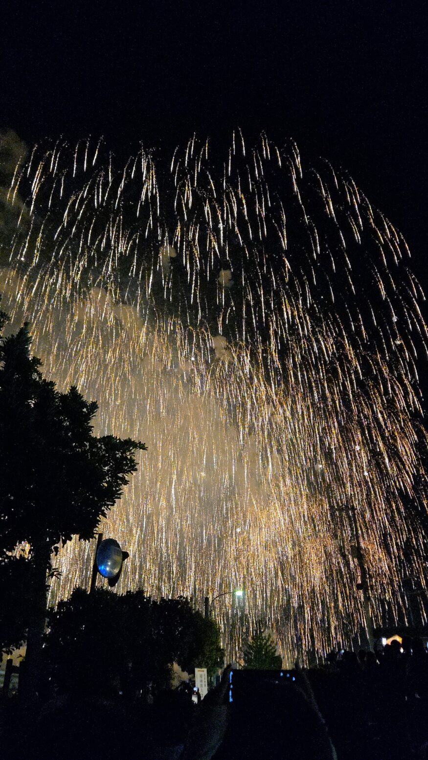 音楽とともに次々と打ち上げられる花火と迫力の衝撃波で気分は最高潮です。次女が3歳くらいの頃は音にびっくりして怖がっていたのに今では「すごーい!きれー!」と楽しそう。